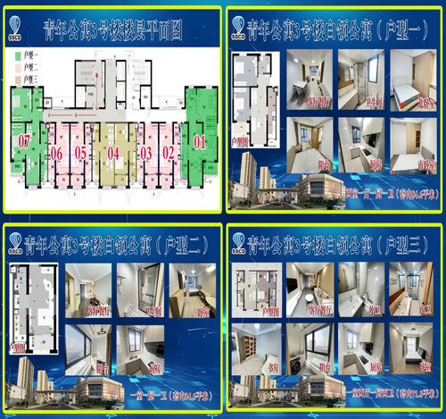 青年公寓于2021年12月開工建設(shè),共建設(shè)保障性租賃住房1450套,其中成套租賃住房(白領(lǐng)公寓)154套,精裝修交付;非成套租賃住房(藍(lán)領(lǐng)公寓)1296間,毛坯交付:可容納約7900人入住,同時(shí)配建一棟四層約1.8萬平方米的商業(yè)樓和2.6萬平方米地下車庫(kù),共設(shè)置機(jī)動(dòng)車位781個(gè)。3號(hào)樓(白領(lǐng)公寓)于2025年1月1日正式啟用,對(duì)外出租。