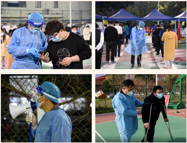 在這個集宿區(qū)內,有一群人奮戰(zhàn)在抗疫最前線。“大白”和“小藍”是他們最矚目的“通行證”、“工作證”,他們身份多樣,上演著超級“變、變、變”,他們既是細致入微的醫(yī)生助手,也是發(fā)放物資的大力水手,還是現場保障的行家里手。