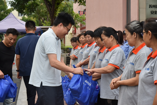 三伏天以來(lái),宿遷地區(qū)氣溫節(jié)節(jié)攀高,連日高溫天氣給一線勞動(dòng)者帶來(lái)了嚴(yán)峻考驗(yàn)。為切實(shí)做好防暑降溫工作,保障一線勞動(dòng)者的身體健康安全, 8月14日,建發(fā)公司組織開展“一線送清涼”高溫慰問活動(dòng)。公司副總經(jīng)理倪松、相關(guān)部門負(fù)責(zé)人共同參加了慰問。