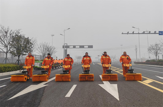 “開始演練!”隨著一聲令下,所有人員、設(shè)備迅速集結(jié),按照預(yù)定到達(dá)指定位置,掃雪除冰演練正式拉開帷幕。本次演練以機(jī)械為主,人工為輔,按照“雪前準(zhǔn)備、預(yù)警發(fā)布、啟動(dòng)應(yīng)急響應(yīng)”流程有序開展。演練中,一臺(tái)臺(tái)撒布機(jī)、雪滾車、雪鏟車等各類“除雪神器”輪番上陣,猶如吹響了掃雪除冰“集結(jié)號(hào)”。