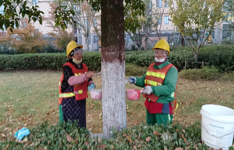 隨著氣溫逐漸下降,園林綠化植物開始逐步進(jìn)入休眠期。為增強(qiáng)綠化樹木的抗凍性、抗病蟲害能力,保障園區(qū)綠化樹木順利安全越冬。近日,建發(fā)公司市政物業(yè)部組織綠化管養(yǎng)單位開展綠化樹木涂白工作,為綠化樹木越冬增加“防護(hù)衣”,確保綠化樹木安全越冬。