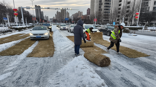 為確保城市主干道及橋梁暢通,建發(fā)公司緊抓夜間作業(yè)窗口,秉持“人歇車(chē)不歇”原則,調(diào)配精良設(shè)備與人員,對(duì)易結(jié)冰的橋面及主干道進(jìn)行高強(qiáng)度清除作業(yè)。作業(yè)人員利用后半夜車(chē)流較少的時(shí)機(jī),集中操作雪滾車(chē)、撒布機(jī)等設(shè)備,并同步在關(guān)鍵路口鋪設(shè)防滑墊。截至20日17時(shí),累計(jì)投入各類(lèi)機(jī)械16臺(tái)、作業(yè)人員320名,撒布融雪劑60噸,有效保障了主要道路的安全通行。