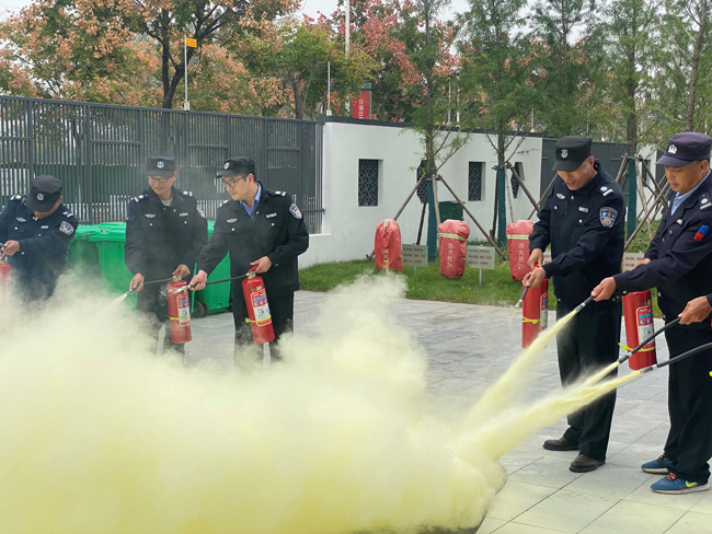 在活動現(xiàn)場,安全員向參與人員講解了如何正確使用滅火器方法和技能,總結(jié)了“提、拔、握、壓”四個步驟,并進行了使用方法的演示。保安、保潔人員輪流進行實際操作,逐步掌握滅火器的使用方法。