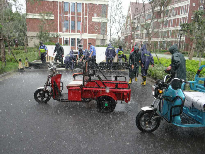 演練情景假設(shè)為下午3時突降暴雨,由于降雨量過大,現(xiàn)場地下停車場積水,存在車輛被淹的危險。在項目防汛應(yīng)急小組指揮下,立即啟動了防汛應(yīng)急預(yù)案, 24小時待命的各應(yīng)急小組進(jìn)入搶險狀態(tài),迅速分頭行動,疏散人員、設(shè)置擋水圍堰、抽排停車場積水,圓滿完成防汛應(yīng)急搶險。