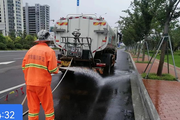 為積極落實(shí)大氣污染防治工作要求,園區(qū)環(huán)衛(wèi)每天出動(dòng)8臺(tái)洗掃車(chē)、2臺(tái)高壓沖洗車(chē),在轄區(qū)內(nèi)持續(xù)開(kāi)展灑水沖洗、除塵、降溫等大氣污染防治作業(yè)。結(jié)合道路特點(diǎn),利用小型高壓沖洗車(chē)對(duì)道路側(cè)邊石、人行道等細(xì)節(jié)處進(jìn)行沖洗。