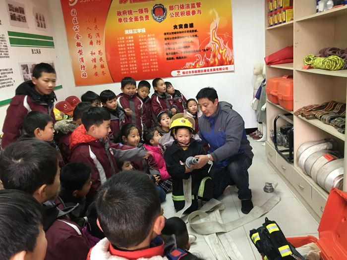 1月25日上午,蘇宿外國語學校師生再次走進園區(qū)公舍微型消防站,感知消防,提高火災安全意識,學習消防知識?;顒又校ぷ魅藛T向師生們介紹了消防器材的名稱及如何使用,邀請小朋友體驗穿戴消防服,講解、示范油盆滅火,模擬火災現(xiàn)場,體驗火場逃生自救,使師生們了解災難來臨時如何應(yīng)對,通過學習,確保同學們度過一個愉快的平安假期。