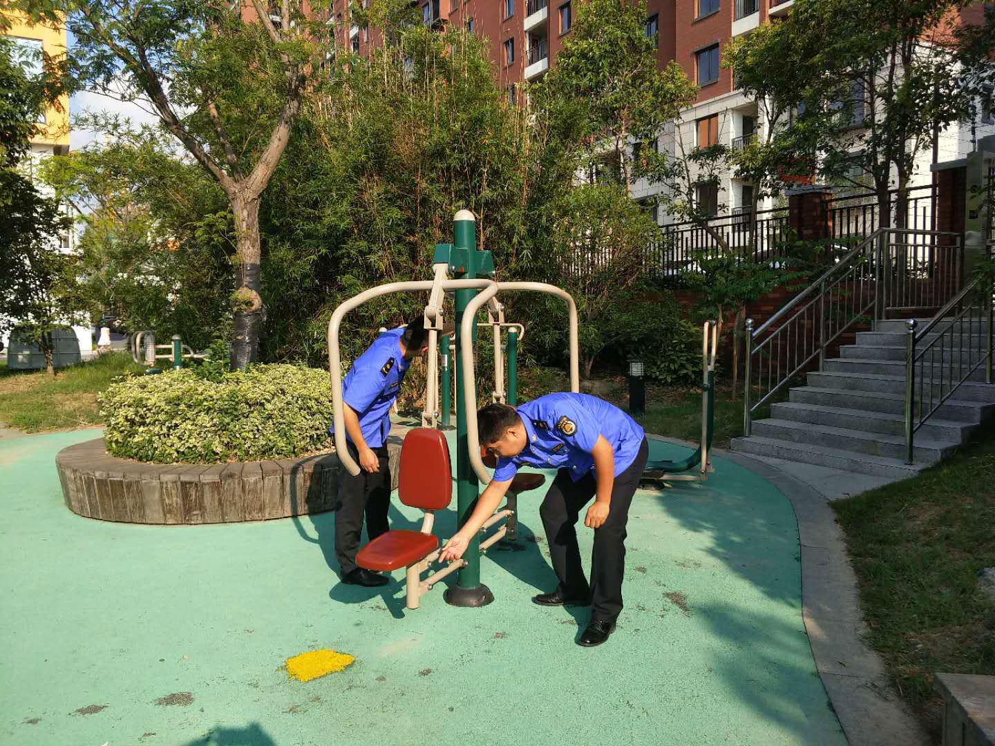 為排除健身器材存在的安全隱患,近日,市政物業(yè)部開展戶外健身器材安全檢查專項(xiàng)行動(dòng),切實(shí)為廣大居民群眾營(yíng)造安全放心的健身環(huán)境。